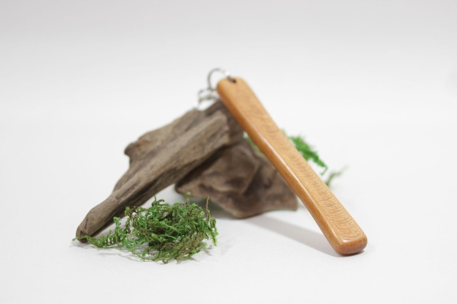 Keyholder 【1series】 KH-104 ホオノキ モクレン科のホオノキを使用した木製キーホルダー 緩いカーブを描いたシンプルなデザインが特徴 握りやすい大きさで存在感があるのでバッグの中からも簡単に取り出せます ドイツ リボス社製オイルで磨き上げた手触りをお楽しみください 主材 【ホオノキ】 サイズ 縦11cm 横1.5cm 厚み0.7cm 重さ8g ※サイズは約で数ミリ誤差あります