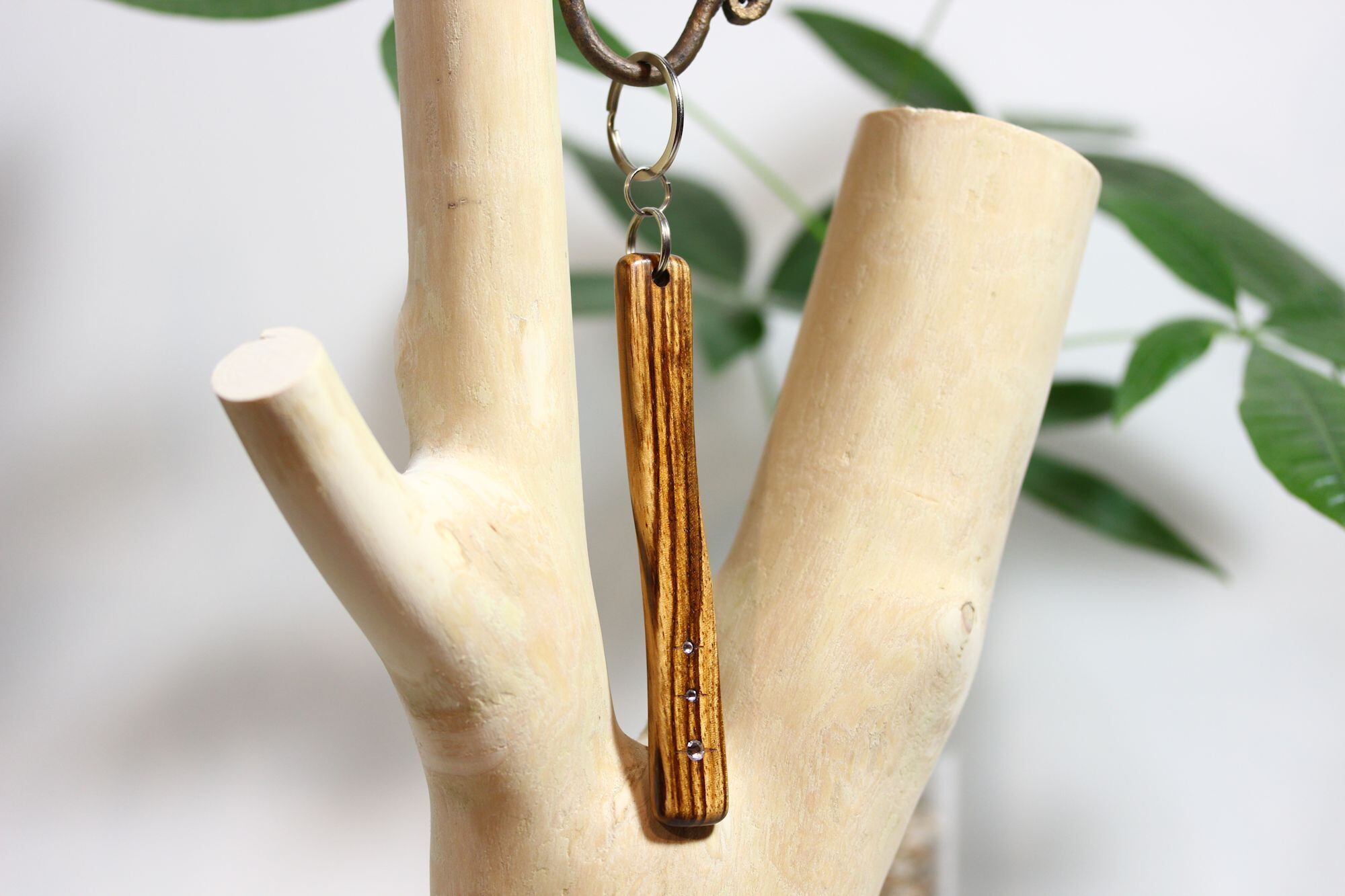 マメ科のアフリカ材ゼブラウッドを使用した木製キーホルダー