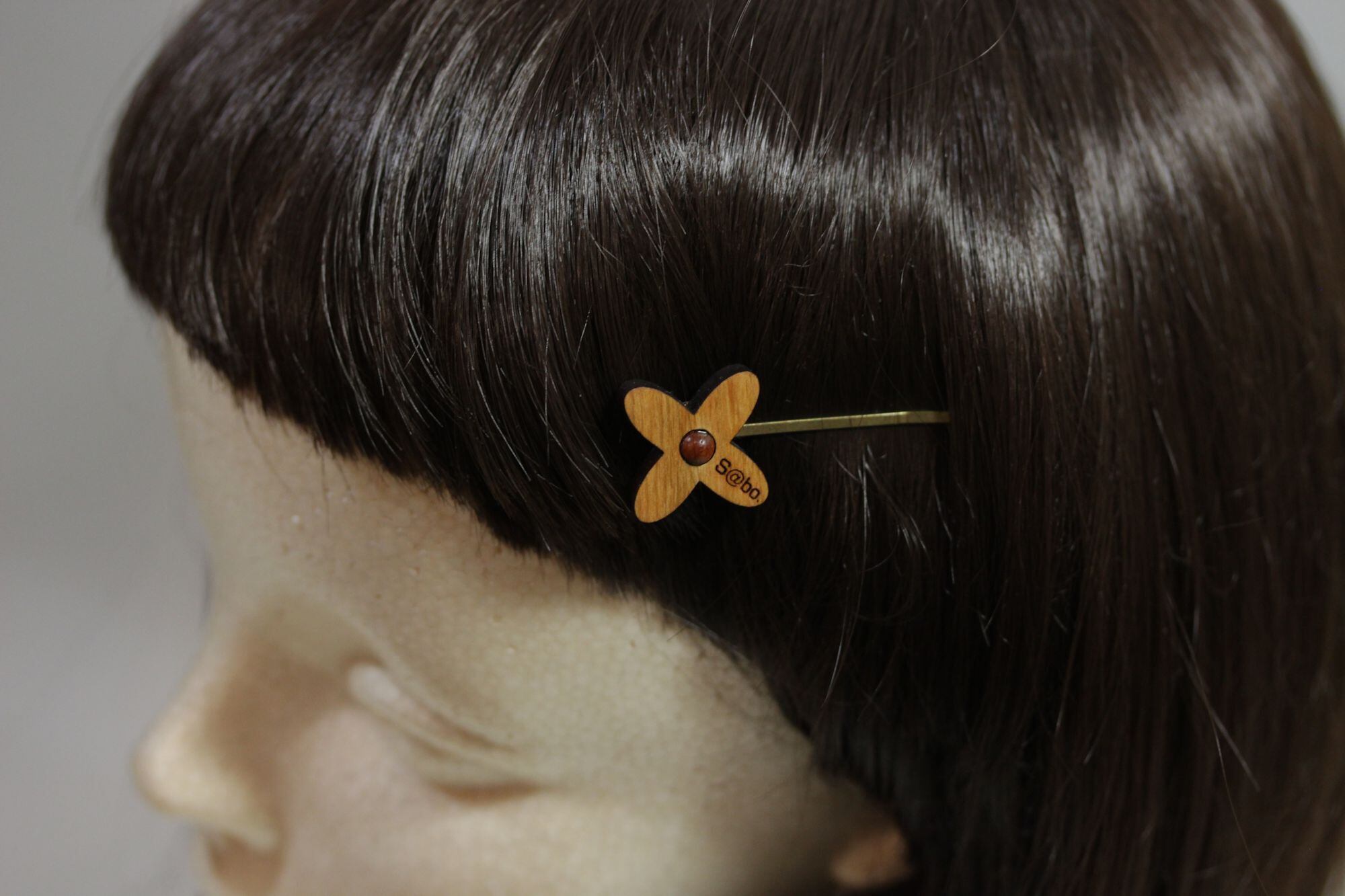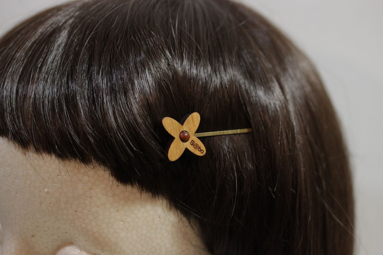 木部 2.5cm X 2.5cm 最大寸法 5.3cm ヘアピン金具長4.5cm 重さ2g