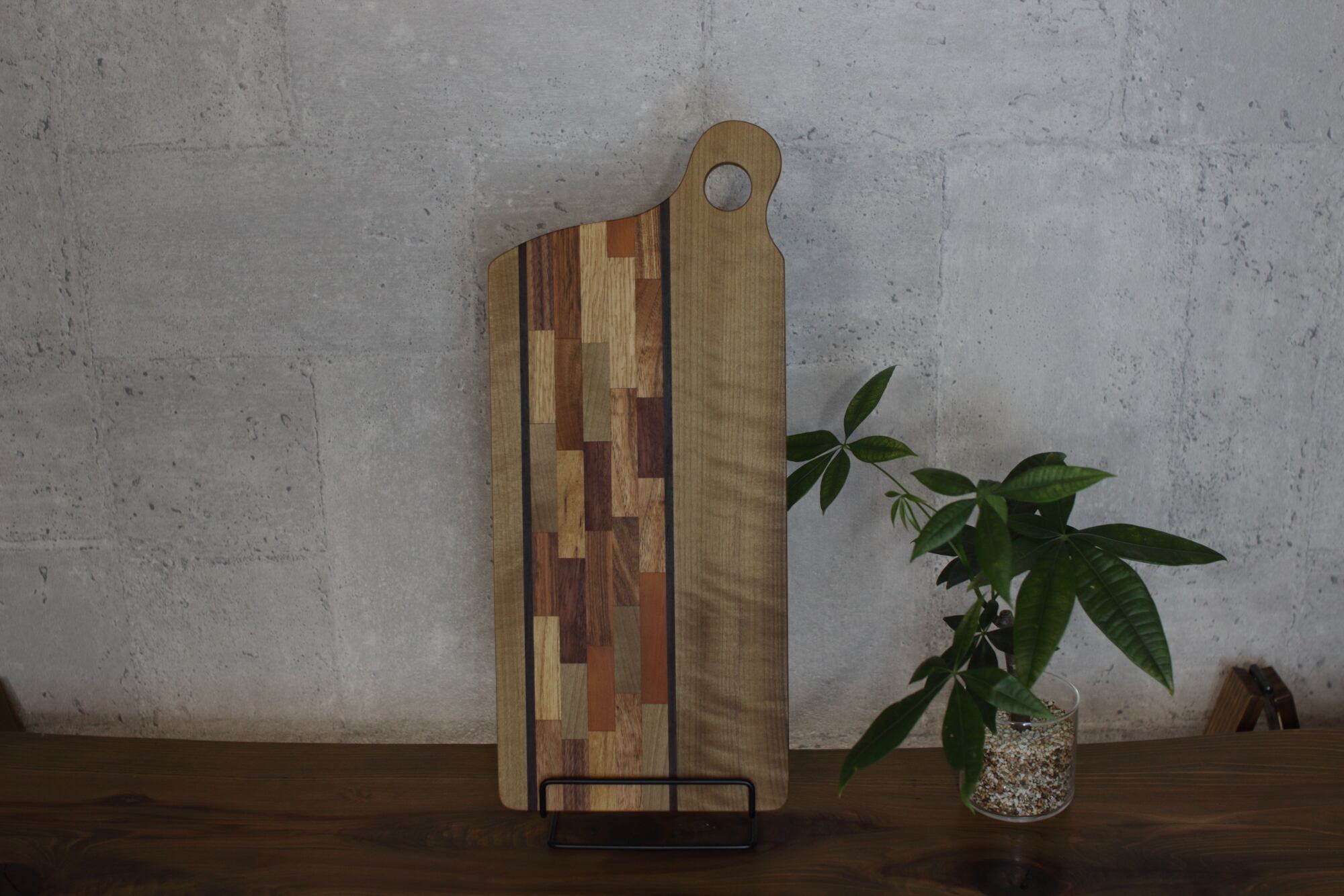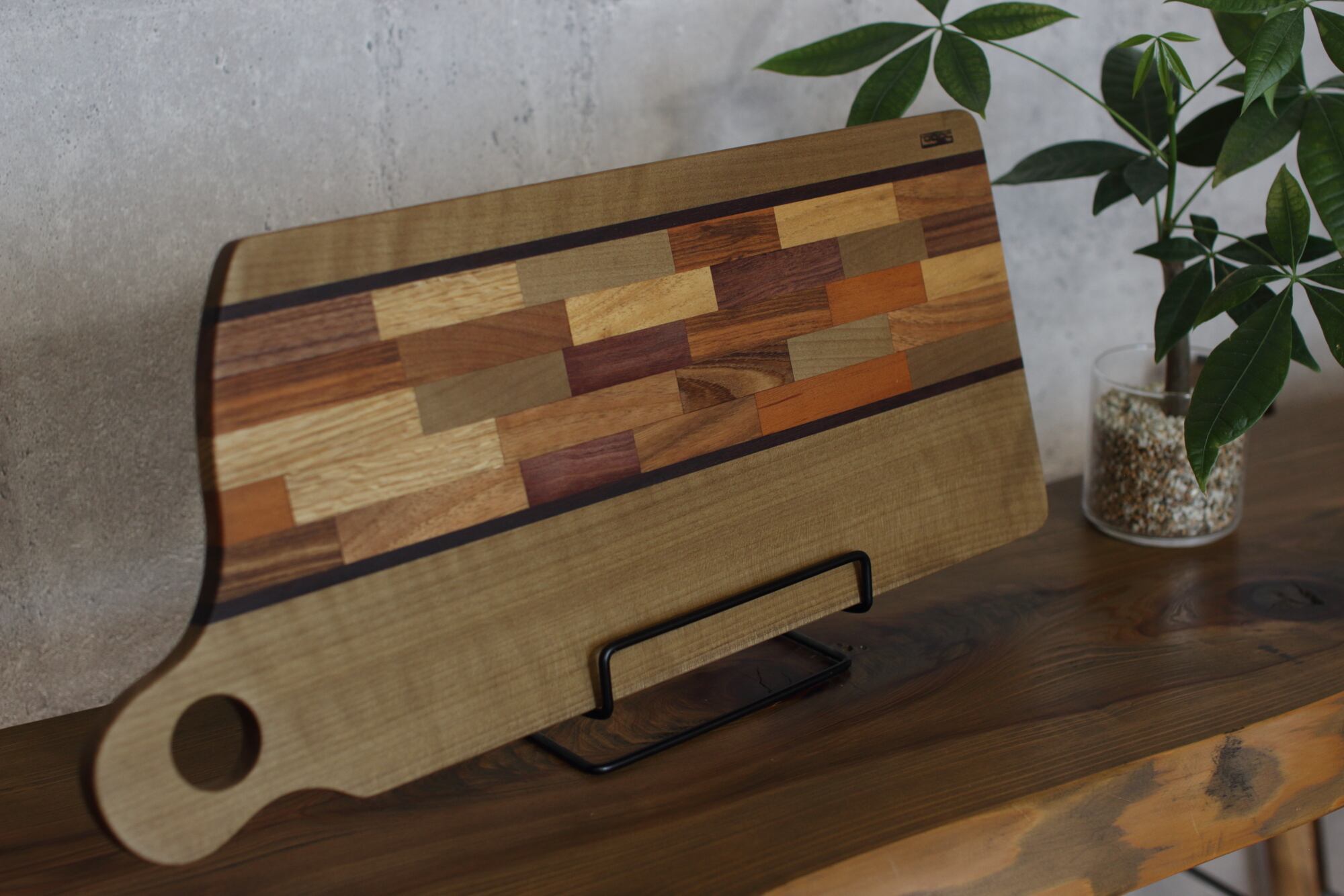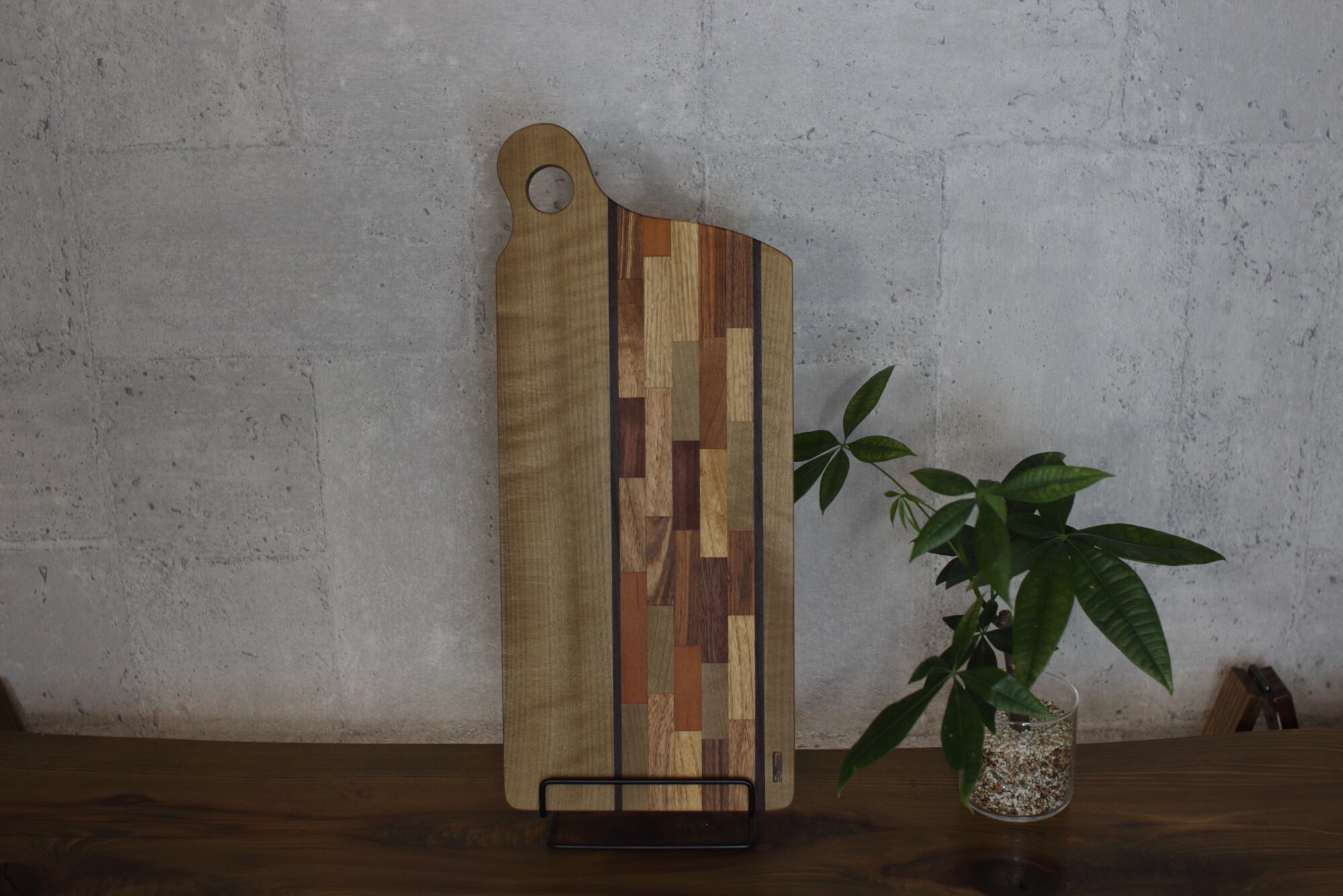ホオノキを主材として多種材を集成したメインをウエンジのラインで整えたデザイン
