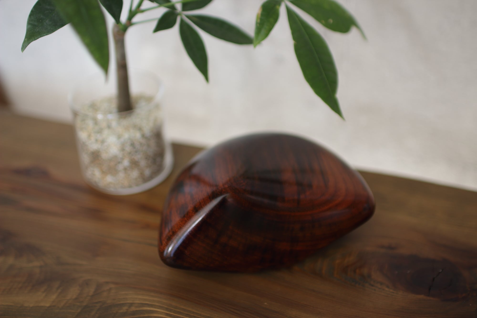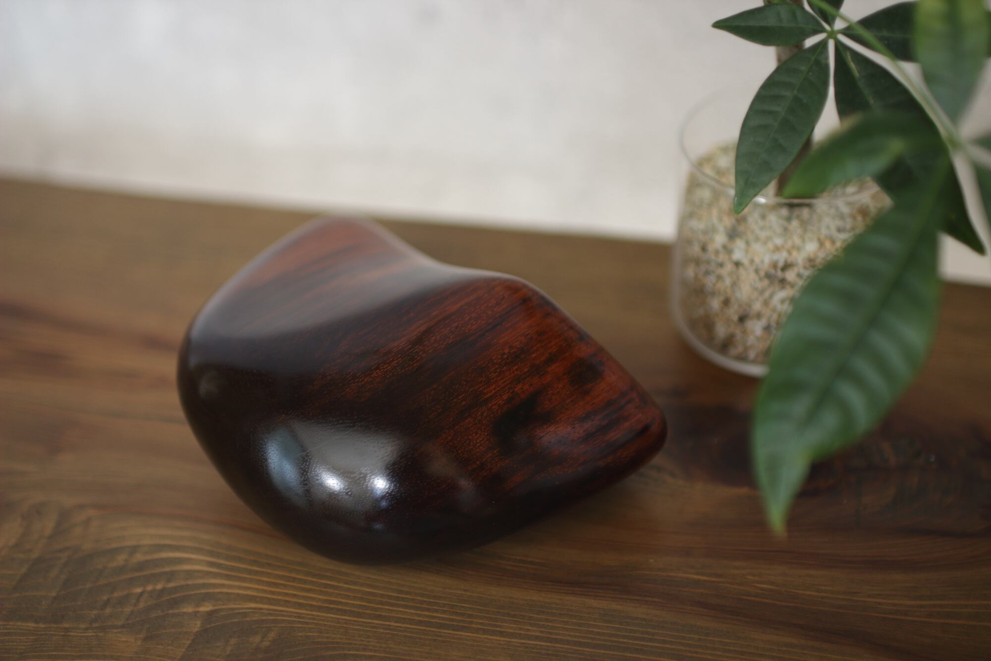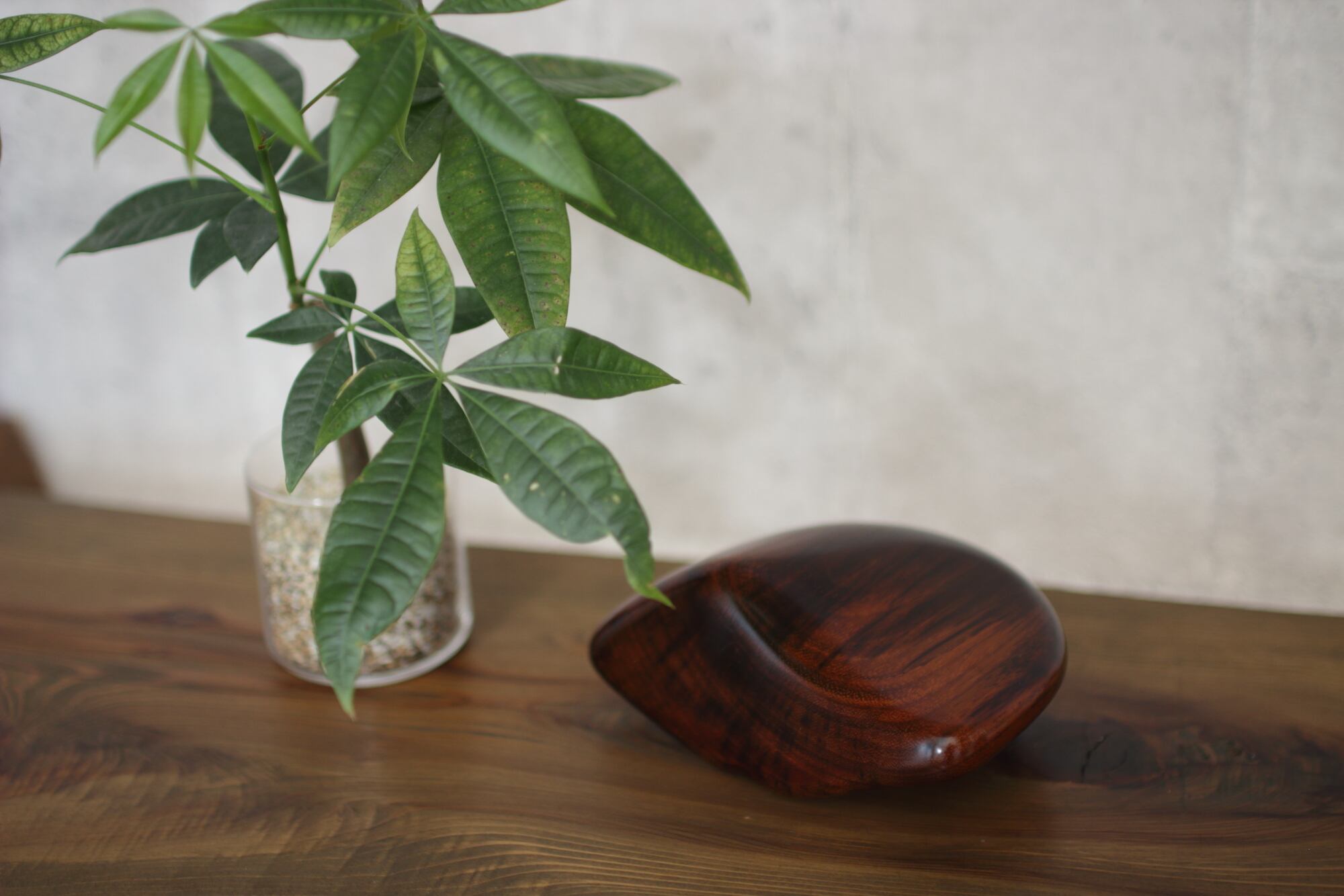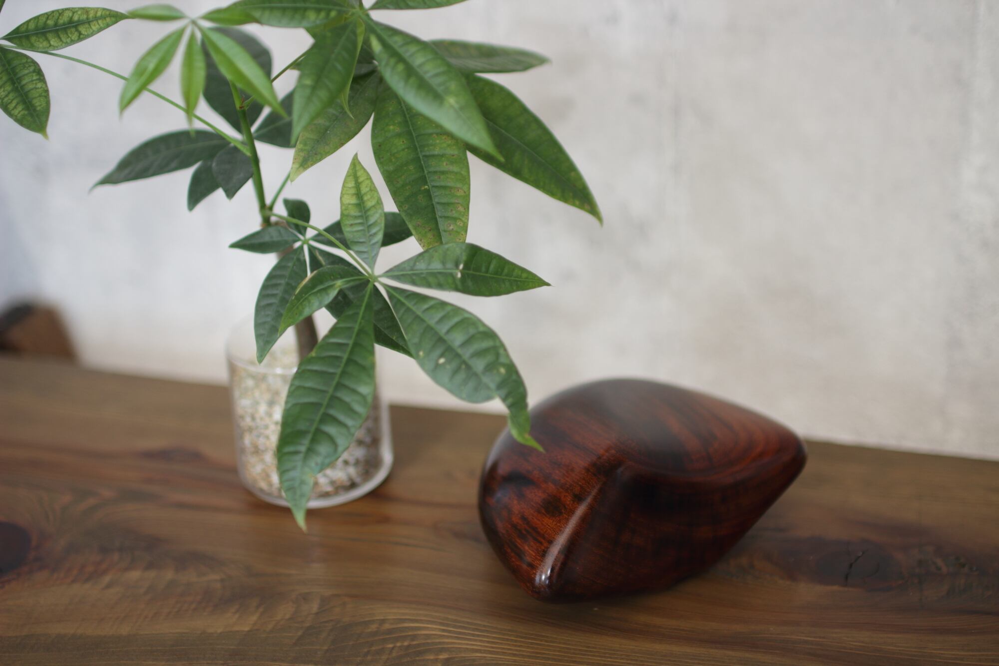無垢材の木口ならではの変色部分を形にしたかったのでご理解いただければ幸いです