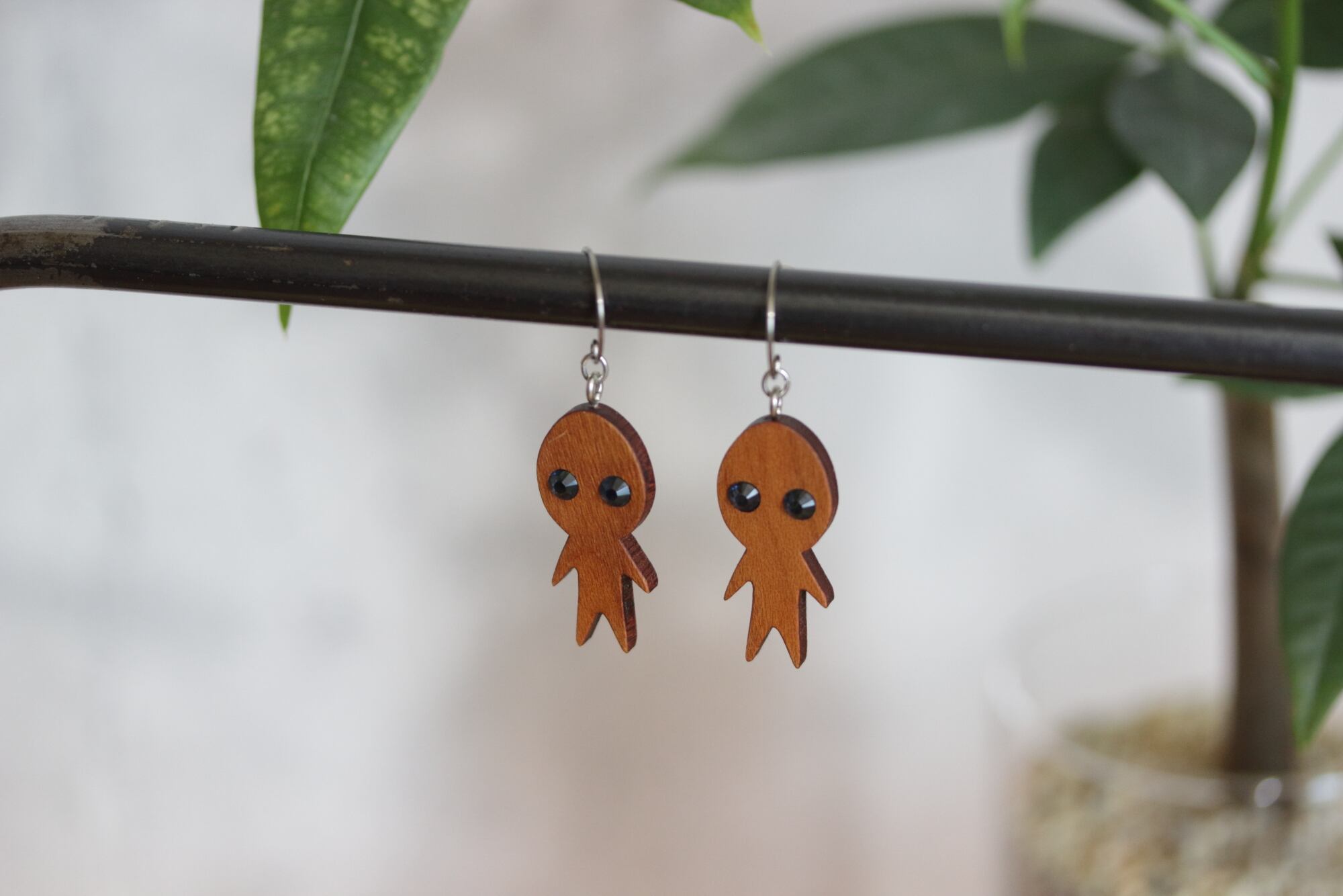 シュリザクラで作った宇宙人型の木製ピアス